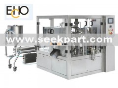 1,Full automatic 8-staion intermittent rotay performed bags dispensing,opening and closing machine combines with automatic combination weigh scale filler, overhaed work platform and Z-elevator bulk feeder.